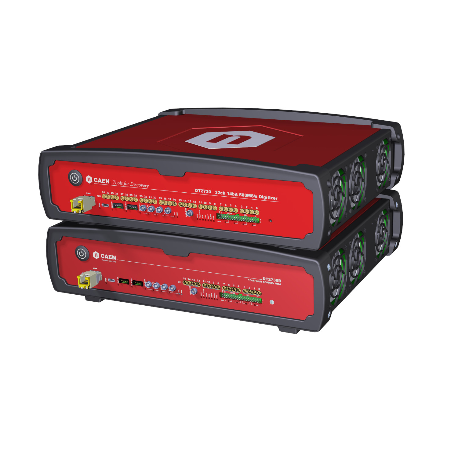 The DT2730 Digitizer is a 32/16-channel digital signal processor for radiation detectors in desktop form factor. It offers not only waveform digitization and recording but also Multi-Channel Analysis for a complete range of applications like nuclear and particle physics, high-timing resolution, Fast Neutron Spectroscopy, and Homeland Security. It is compliant with mid-fast signals typically coming from liquid or inorganic scintillators coupled to PMTs or SiPMs.