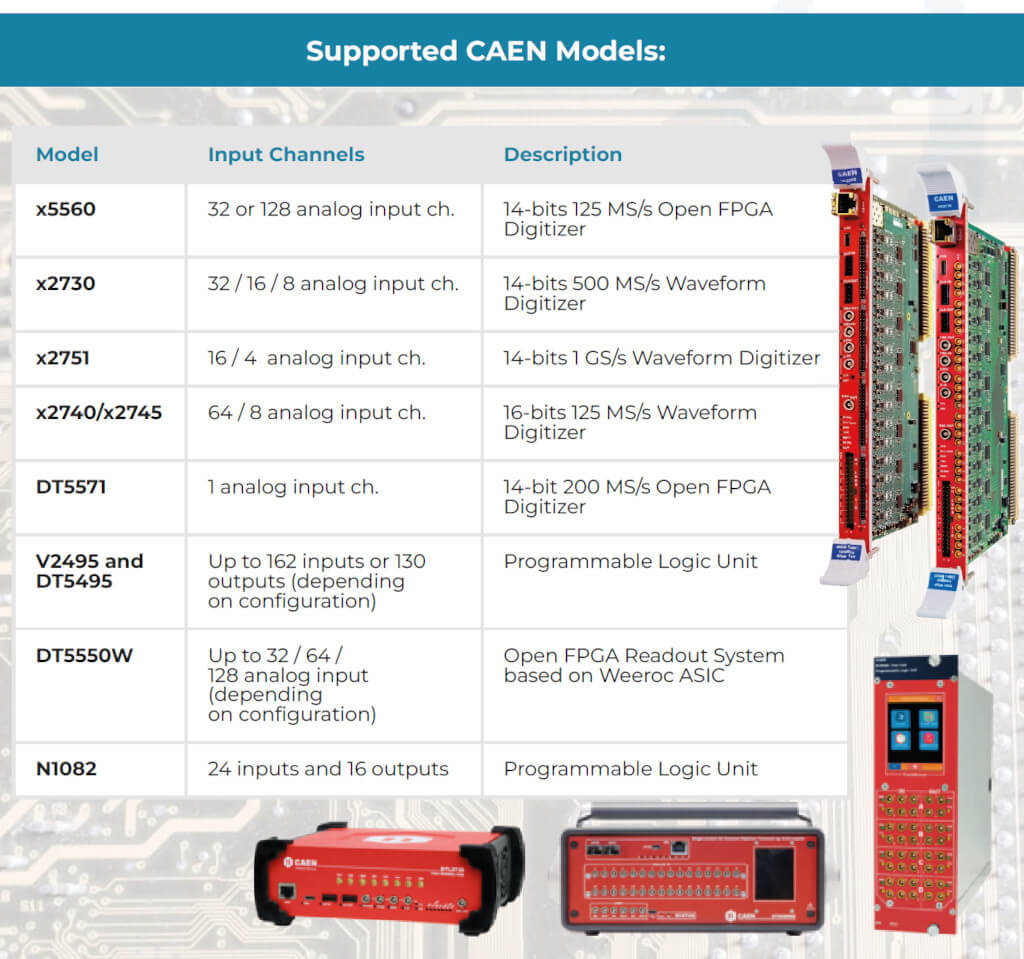 Sci-compiler has been designed to generate code for some particular hardware platform designed by CAEN. Presently, Sci-Compiler PRO license supports the following CAEN products: